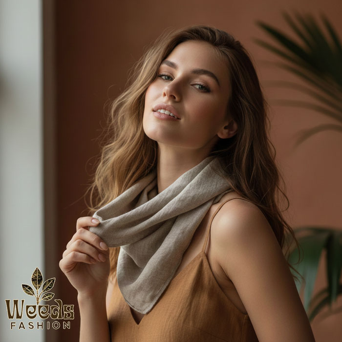 Bandana Konopna Szara Niebarwiona Chusta Zmiękczana