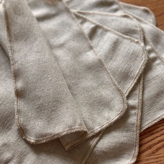 Chusteczki są uszyte z organicznej tkaniny bawełno konopnej.
