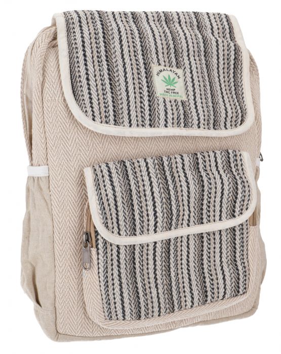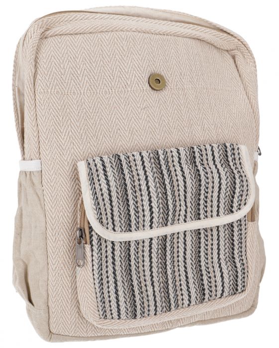 Etniczny Plecak Konopny na Drobiazgi i Laptopa w Czarne Paski