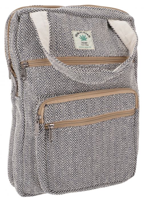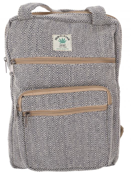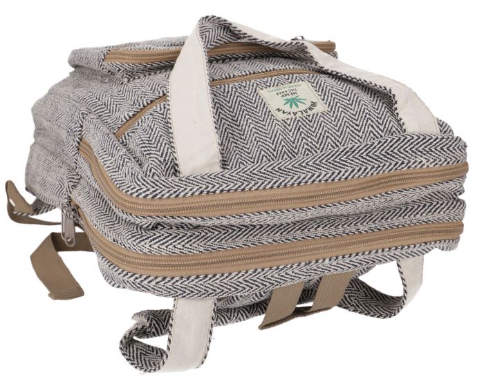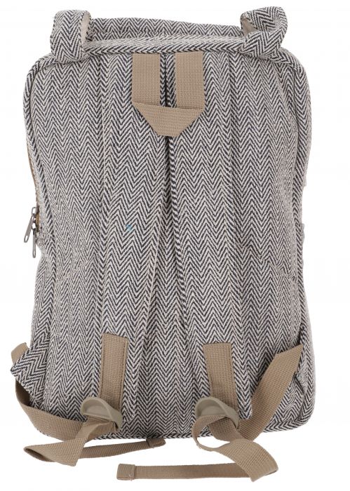 Etniczny Plecak Konopny na Laptopa Czarno Biała Jodełka