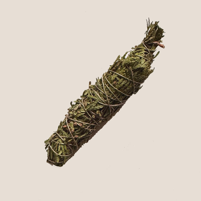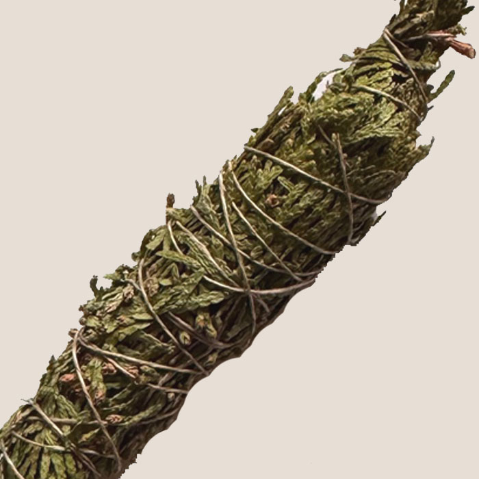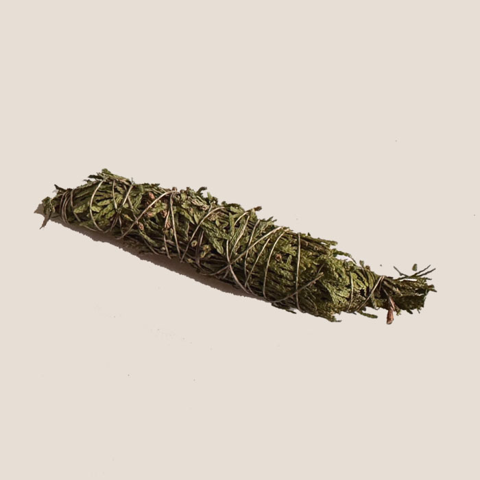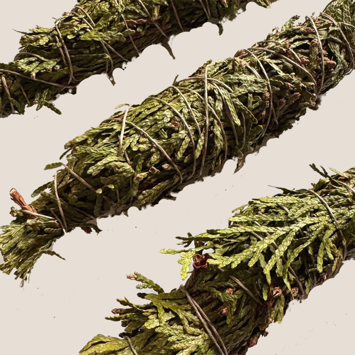 Ręcznie robione kadzidło z gałązek żywotnika, związane lnianą nicią.