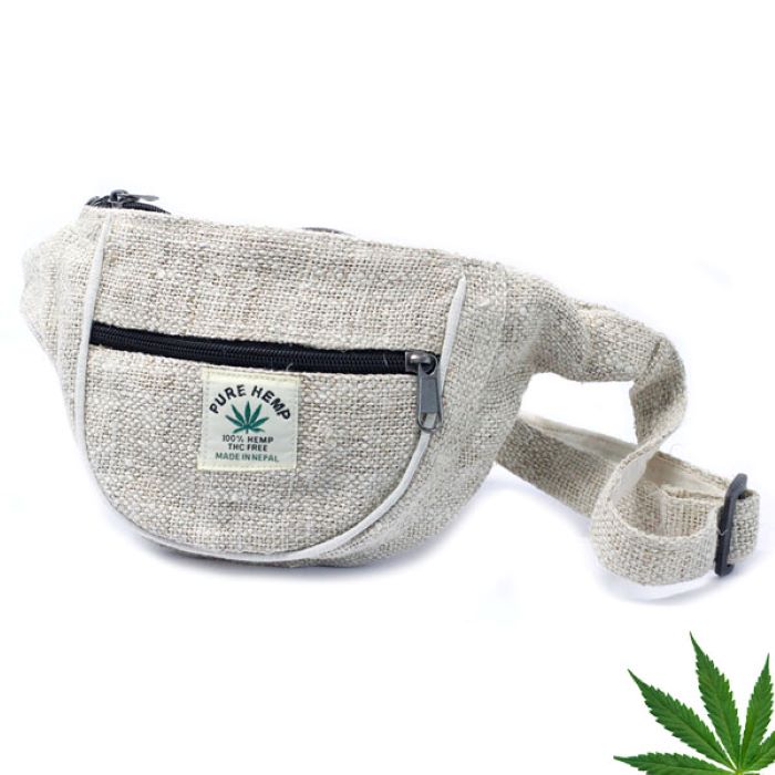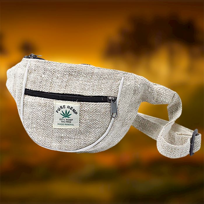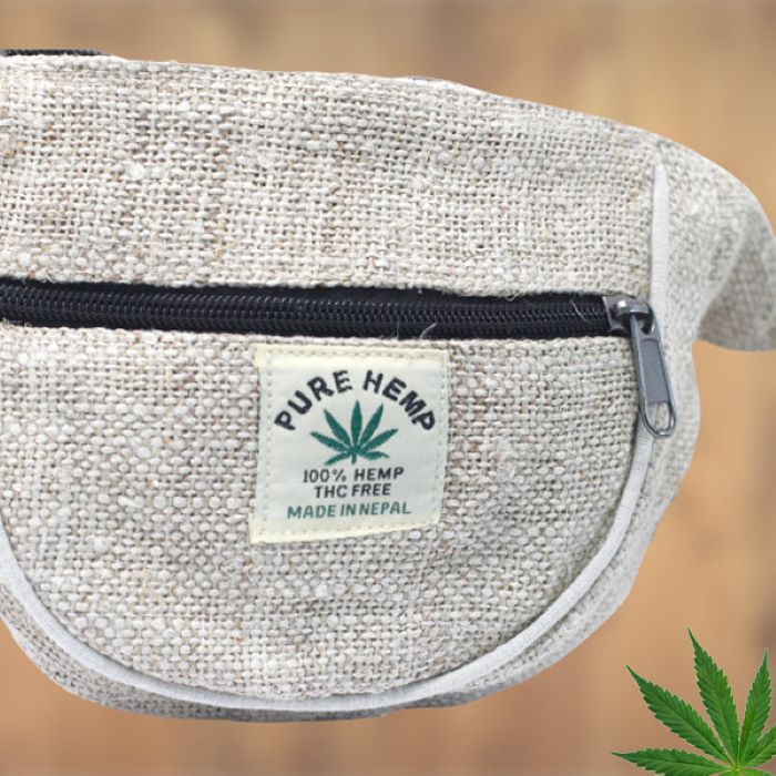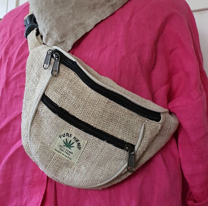 Oryginalna nerka uszyta z konopi siewnej, zapinana za zamek błyskawiczny, z regulowanym paskiem.