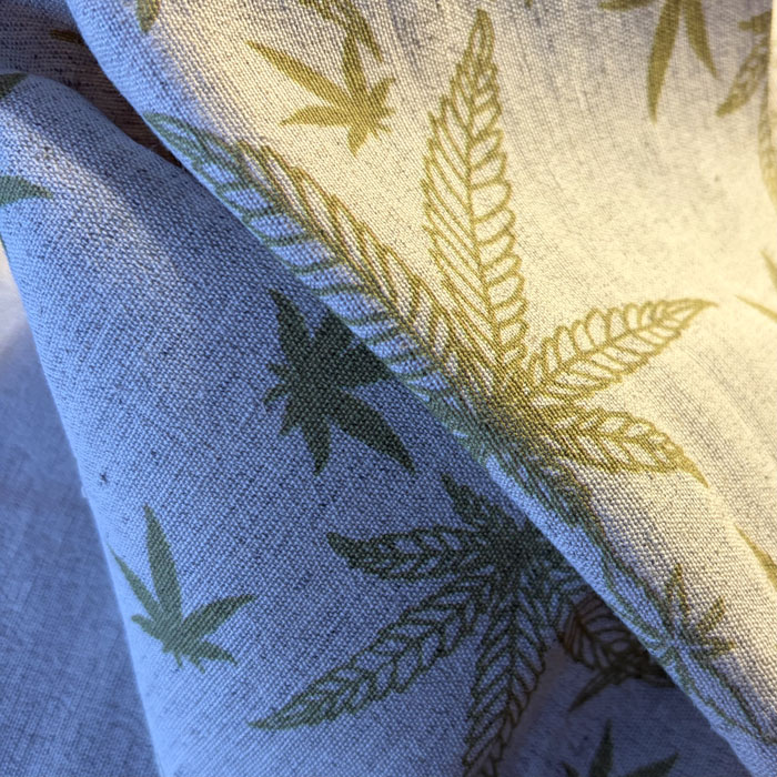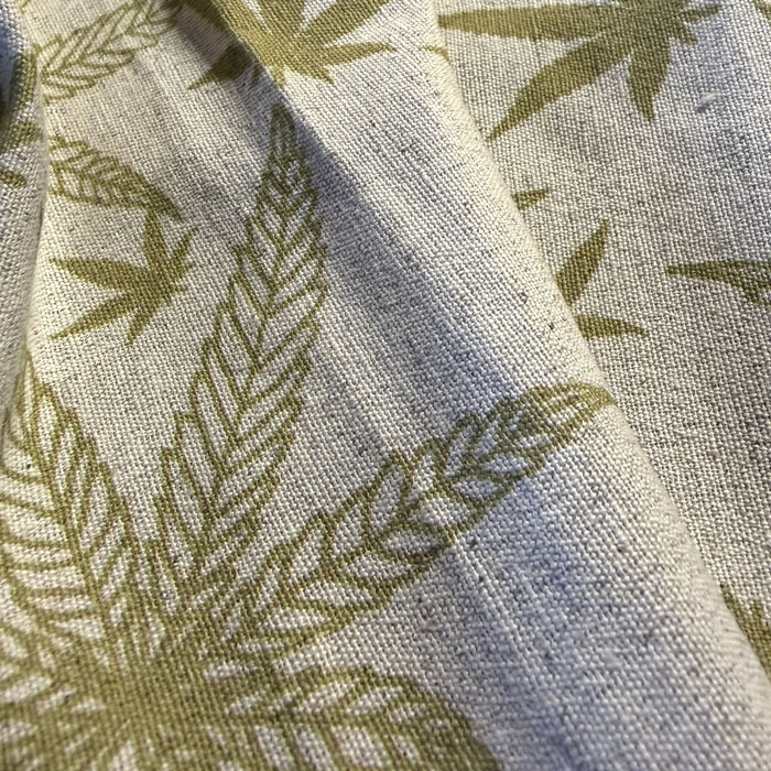 Odkryj siłę natury ubraną w subtelny, botaniczny wzór. Ta niebarwiona tkanina to hołd dla tradycyjnych upraw i ekologicznego rzemiosła. Naturalny, beżowy odcień włókien stanowi idealne tło dla zielonych liści konopi, tworząc materiał o niezwykłej energii i surowym, a zarazem eleganckim wyglądzie.
